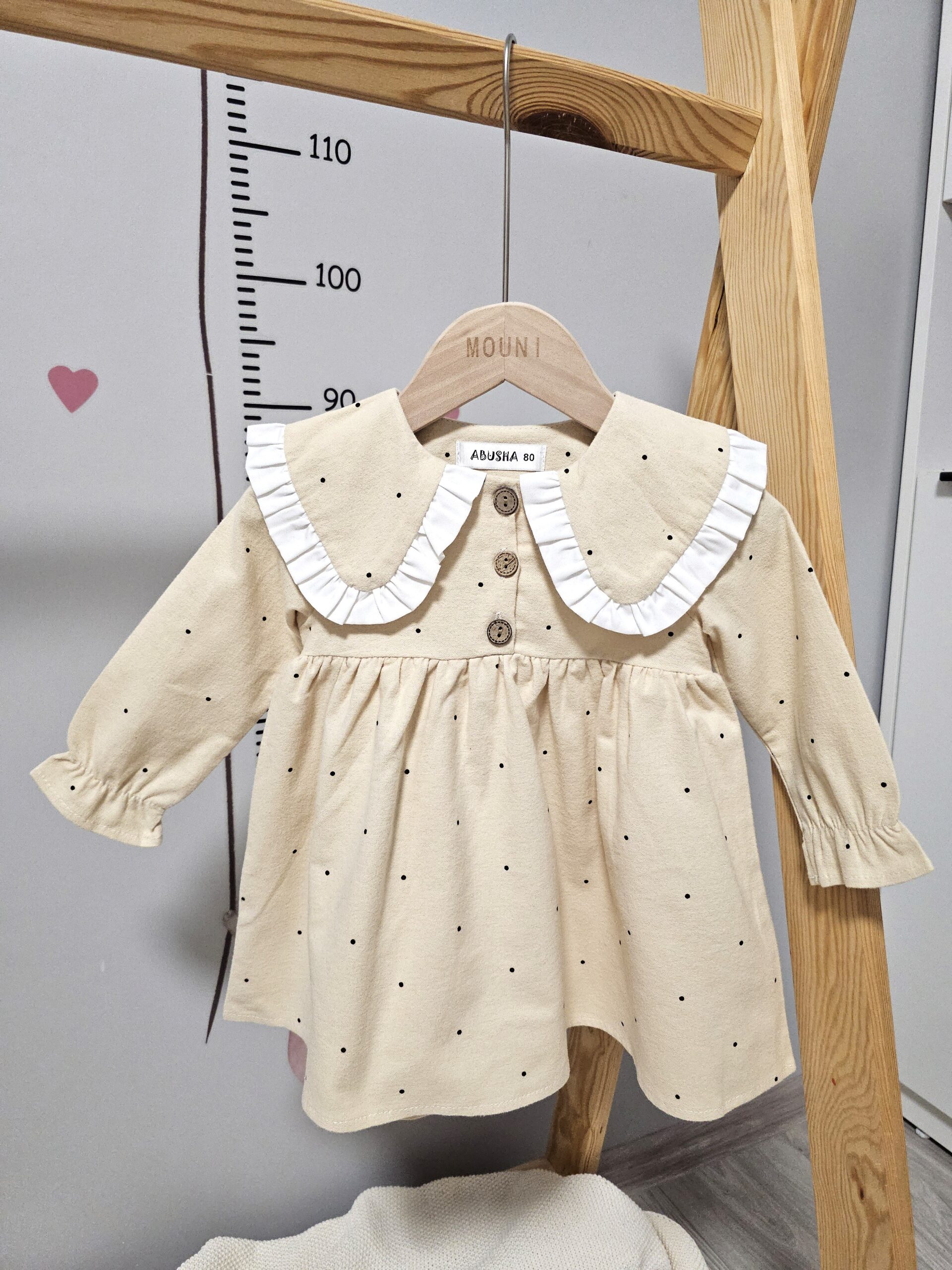80 (длина платья от плеча 40см, рукав до плеча 29см, обхват груди 48см).