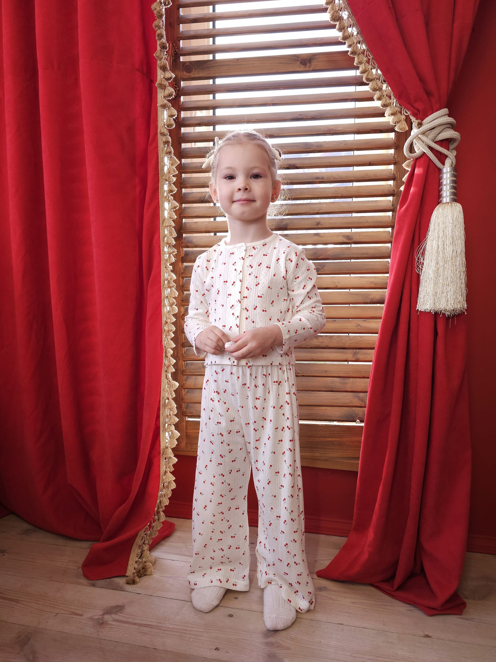 116 (длина рубашки от плеча 34см, рукав до плеча 37см, обхват груди 58см, длина штанишек 65см, шаговой 43см).